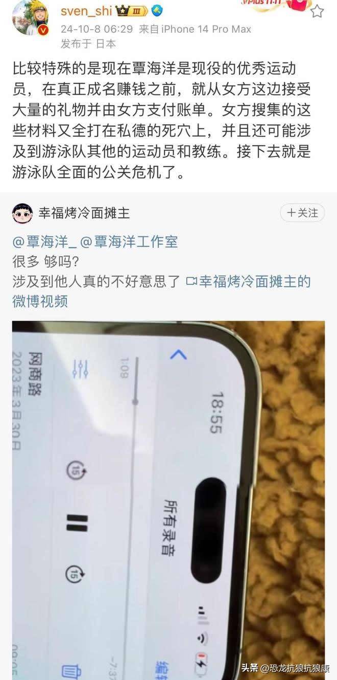 为了证明自己所言非虚,这位女子在网络上晒出了大量聊天记录、转账截图等“实锤”证据,将覃海洋推向了风口浪尖,在这些证据中,我们看到了一个与以往形象截然不同的覃海洋:他挥金如土,在夜店一掷千金;他虚荣浮夸,穿着女友购买的名牌服饰,却对外宣称是自己买的;他薄情寡义,在女友流产时不闻不问甚至还拿着女友家人送的手机去撩拨其他女生……