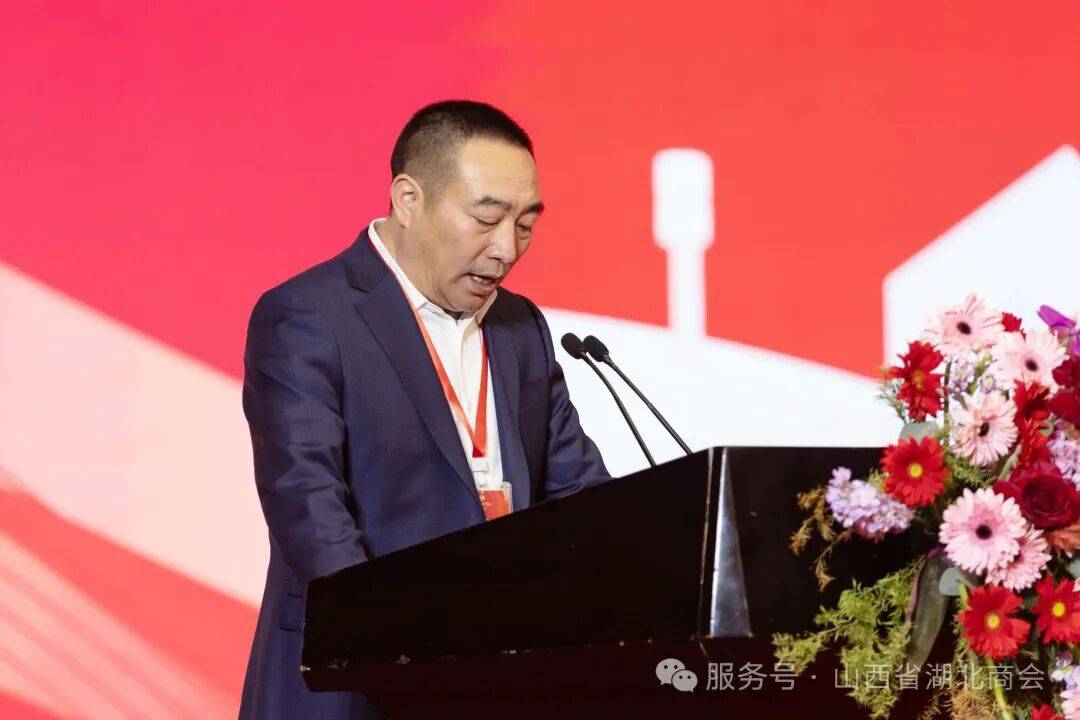 山西省湖北商会会长伍昌义发表热情洋溢的欢迎辞。他在致辞中回顾了商会第五届换届以来的丰硕成果,每一步坚实足迹都凝聚着全体楚商的同心同德与携手奋进。伍昌义表示,“三晋楚商”这一崭新称谓,是在晋楚商身份认同的升华,更是团结协作的象征,既传承了荆楚儿女“筚路蓝缕、以启山林”的敢闯精神,又浸润了晋商“诚信经营、开拓进取”的厚重文化,未来将以这一共同身份为荣,当好晋鄂协作的连心纽带与楚商成长的温暖港湾。