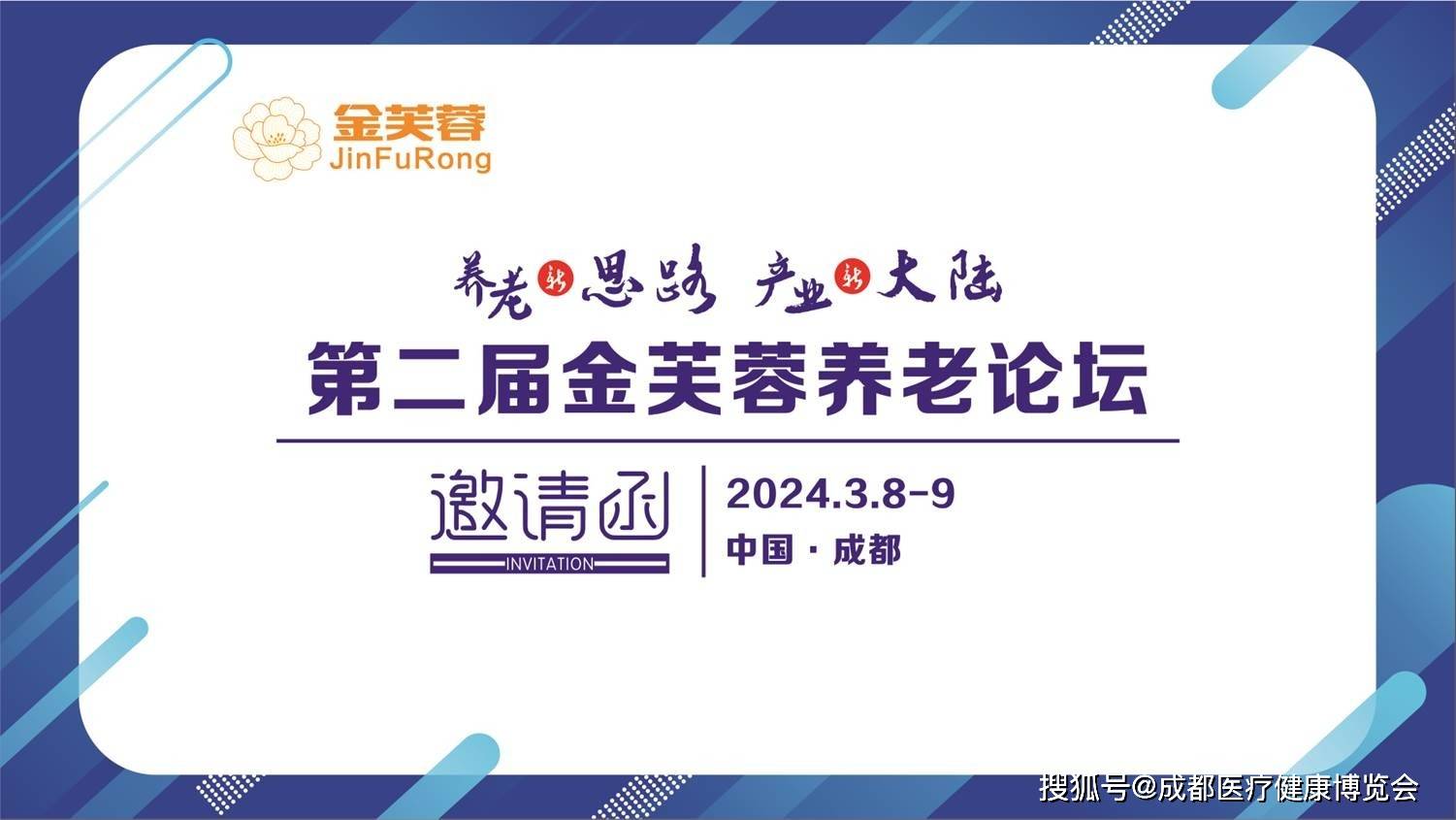 本次金芙蓉论坛由成都市养老服务业博览会、中国·成都国际养老服务业博览会组委会、孝行天下融媒体中心主办,以“养老新思路·产业新大陆”为主题,论坛内容包括:探索新方式,助力养老服务市场化发展;定义新未来,优化居家养老和社区养老服务;挖掘新业态,迎接人才与模式的双重挑战;开辟新路子,破局养老营销与盈利瓶颈等。