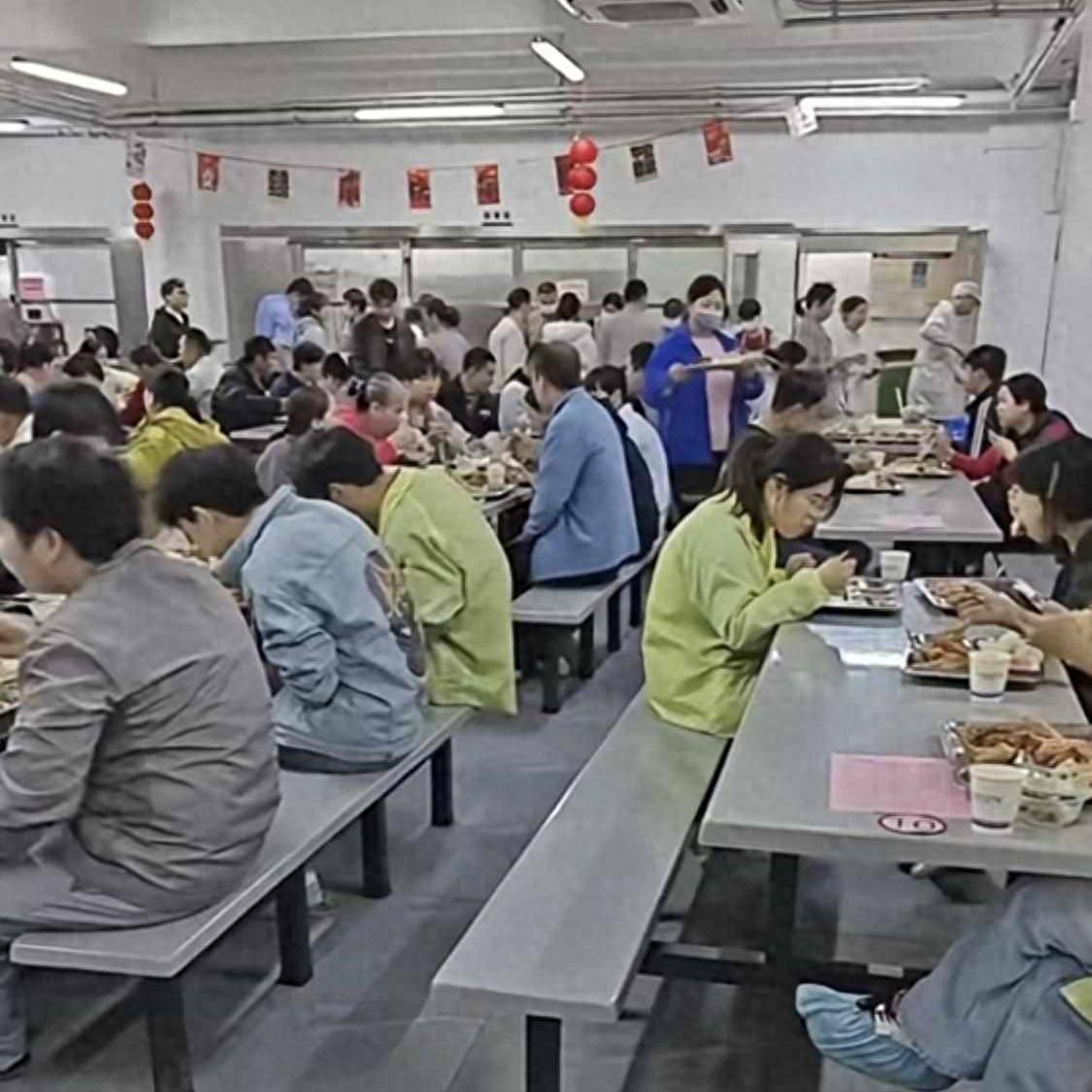 3000多名员工,下班之后不用挤大巴、不用赶场地,直接走进厂里的食堂,就能排队打自助餐。