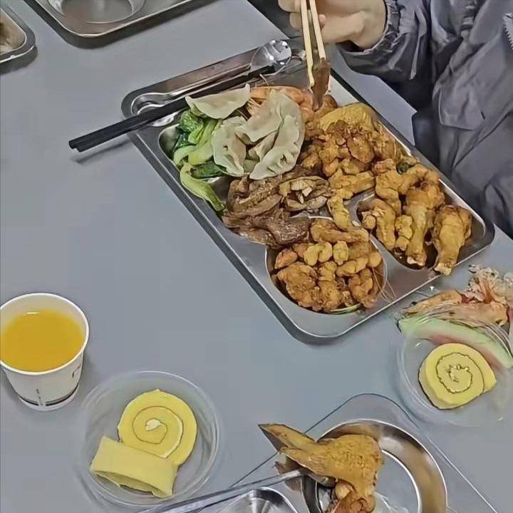 说实话,比起酒店里那顿吃不饱、还要陪领导客套的酒席,食堂自助餐简直太香了。