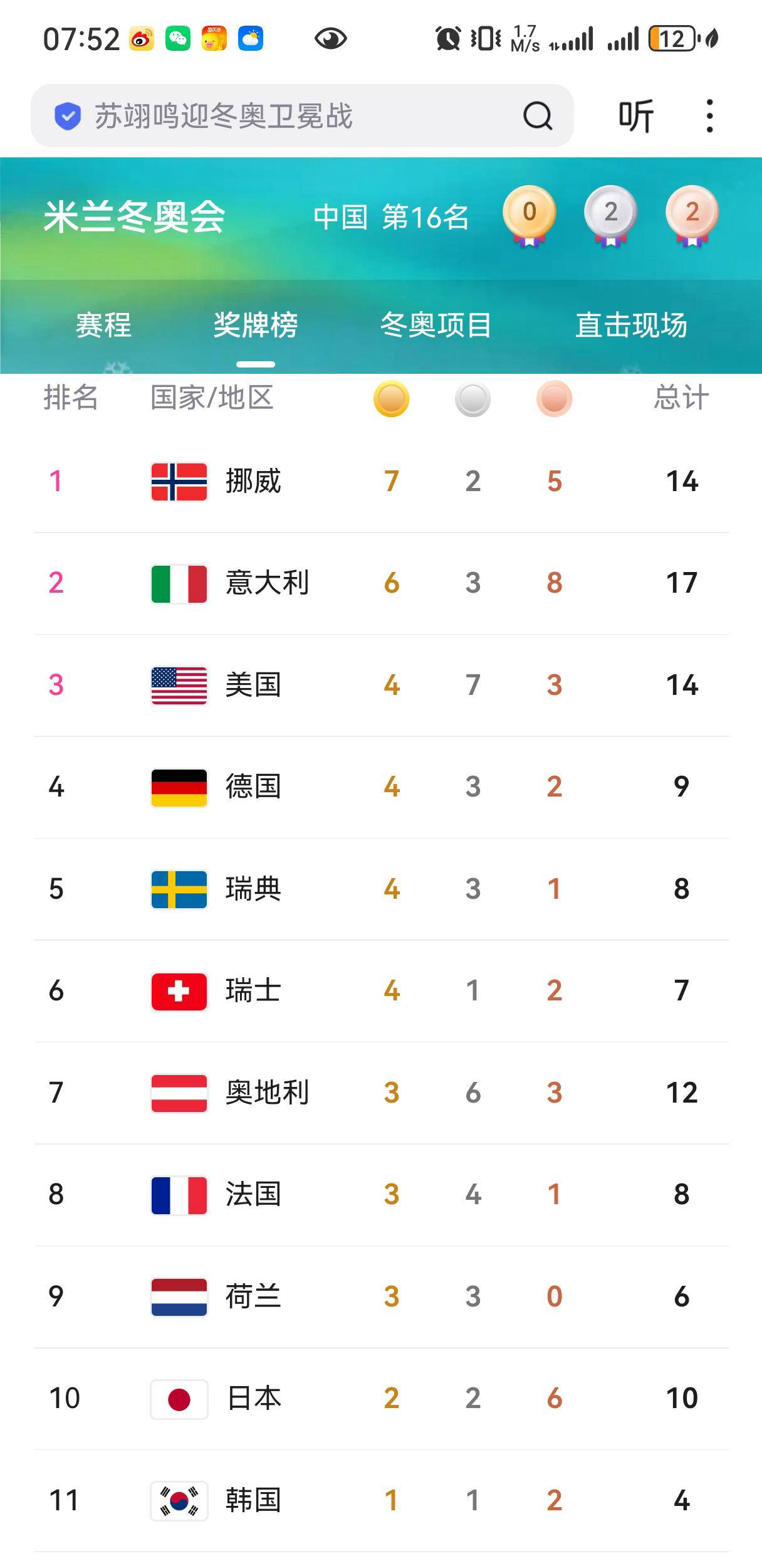 在奖牌榜上,挪威依旧稳坐金牌榜首,凭借七枚金牌彰显其作为冬季奥运霸主的强大实力。尽管挪威夏季奥运成绩平平,这个北欧小国在冬奥会上却是金牌最多的国家。东道主意大利队发挥同样抢眼,累计获得六枚金牌,一举超过美国跃升至奖牌榜第二位,仅落后挪威一金。美国队则排名第三。亚洲方面,日本继续领跑亚洲各代表队,紧随其后的韩国队终于摘得本届冬奥会首金,成为本次比赛的一大亮点。