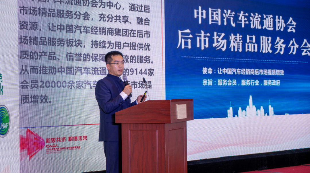 中国汽车流通协会后市场精品服务分会秘书长张保泉先生对2020年CADA精品服务分会进行工作汇报,张保泉秘书长首先对CADA精品分会进行介绍,并且针对已实施的《汽车装饰用品采购规范》及已立项的“汽车装饰用品销售及售后服务规范”“汽车装饰用品行业术语”三项团体标准进行阐述,同时对本次年会流程进行讲解,最后祝贺中国汽车流通协会后市场精品服务分会成立四周年,祝CADA精品分会生日快乐!